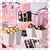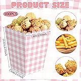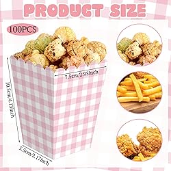 Gueevin 100 Pcs Pink Gingham Popcorn Boxes with Scalloped Gingham Pink Party Favor Mini Paper Popcorn Containers Bulk for Movie Night Decorations Bridal Baby Shower Party Supplies