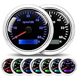 【RPM Range & Diameter】 This rpm tachometer features a broad 0-6000 RPM measurement range, providing precise real-time engine speed monitoring for optimal performance. Its space-saving 3-3/8" (85mm) diameter tachometer gauge ensures easy installation in tight dashboards or panels of various vehicles. The compact rpm gauge delivers clear visibility without occupying excessive space, making it ideal for custom or retrofit applications. 【7-Color Adjustable Backlight】 This user-friendly rpm tachometer allows you to personalize your dashboard with 7 backlight colors (Red, Sky Blue, Blue, Olive Green, Green, Purple, White). Simply short-press the button to cycle through hues, enhancing nighttime visibility and matching your interior ambiance.The tachometer for car ensures optimal readability in all driving conditions.This easy-to-use car rpm gauge puts the driver's convenience first. 【Compatibility】 This rpm tachometer works flawlessly with 1 to 10-cylinder gasoline, diesel, or outboard engines. It serves as the ideal tachometer for 12V/24V car, truck, boat, and other marine/road vehicles. The robust tachometer gauge withstands harsh environments (IP67 waterproof rated), ensuring reliable operation whether on highways or open waters. 【Necessary Adjustments】 After correctly wiring the tachometer, you need to adjust its speed ratio to match different speed. Long-press the button for 3 seconds to enter setting mode—the display will show "H -*** .*". Hold the button down to continuously increase the speed ratio value; release and re-press button to steadily decrease the value. Use this method to set the optimal speed ratio, ensuring your rpm tachometer displays engine RPM accurately. 【Package Includes】 Your package includes the premium rpm tachometer unit and a instruction manual for hassle-free setup. The manual provides clear guidance on wiring, backlight customization, and tachometer gauge calibration. If you have any doubts during installation or use, we have a professional team available to answer them at any time.
