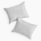 Striped Design: Features a ticking strip pinstripe pattern that brings a touch of nature and freshness to your bedroom decor; ideal for fans of modern farmhouse aesthetics Standard Size: 2 Pillow Cases 20x26 inches Soft and Cozy: Crafted from premium brushed microfiber, these pillowcases offer exceptional softness, durability, and breathability in every season through spring, summer, fall, and winter Thoughtful Details: Envelope closure ensures that the pillow stays securely in place, tuck for a polished look or leave loose for a casual vibe Easy Care: Cleaning is a breeze; machine wash in cold water on a gentle cycle, then tumble dry on low or let it air dry; avoid bleach