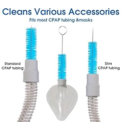 【CPAP Tube Cleaning Brush】Our cpap tube cleaning brush is designed to provide a comprehensive solution for your better sleep equipment. The CPAP cleaning brush features ultra-soft nylon bristles that effectively remove dirt and debris without damaging the delicate interior of your cpap tubing. With a flexible stainless steel core, it effortlessly navigates through the entire length of the cpap hose, ensuring no spot is left unclean. The rotating bristle head reaches every crevice and connection 【Suitable for most CPAP Tubing】7 Feet CPAP tube cleaning brush perfect for 15mm, 19mm, and 22mm diameter hoses, this brush is compatible with most cpap machines. CPAP cleaning brush’s durable construction ensures long-term use, while the compact design makes storage and travel a breeze. Maintain optimal airflow and extend the life of your cpap equipment with this essential cpap cleaning brush 【All-in-One CPAP Cleaning Kit】Our cpap cleaning kit includes everything you need for a thorough cleanse. The brush diameter of the long tube brush is suitable for standard CPAP tubing and slim CPAP tubes, while the smaller brush is designed for masks and some other machine accessories. The stainless steel frame ensures durability, and the soft bristles protect your CPAP equipment. The kit is designed to clean hard-to-reach areas, eliminating germs and improving airflow. Lightweight and portable 【 Durable & Versatile】Upgrade your CPAP maintenance routine with our heavy-duty cleaning brush, built to last. Crafted from stainless steel and scratch-free nylon, it safely cleans CPAP masks, tubes, and connectors without wear and tear. The dual-ended design includes a long tube brush for hoses and a smaller brush for masks, making it a complete CPAP cleaning kit. Suitable for DreamStation and ResMed AirSense, this brush ensures hygienic, odor-free CPAP therapy. Lightweight and portable, it’s i 【Compact Travel CPAP Cleaner】Don’t let dirty CPAP tubes ruin your trips! Our portable CPAP cleaning brush is lightweight, compact, and TSA-friendly, making it ideal for travel CPAP machines. The 7-inch collapsible design fits in your luggage, while the stainless steel bristles provide deep-cleaning power on the go. Perfect for cleaning CPAP masks and hoses in hotels or RVs, this brush ensures fresh, sanitized equipment wherever you sleep