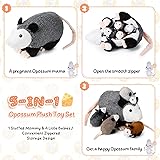 Bundle of Joy: unbox 5 adorable Opossum plush toys, about 13.78 inch mother opossum and 4pcs 4.72 inch baby opossum; Ideal for playtime, story sessions, or as charming decor Comfort: crafted from plush fabric, these toys are filled with PP cotton for a soft, cuddly feel; Sturdy, fade resistant, and easy to clean, a delightful and safe experience for all Revive the Fluff: vacuum packed for shipping, these plushies bounce back to life with a pat or a short stint in the sun; A quick dry or blow with a hair dryer restores their original shape in minutes Interactive Fun: unlock an experience with a zipper on the large opossum's back; Discover a cute and playful feature, help her 'give birth' to up to 4 baby opossum; Suitable for imaginative play and bedtime companionship Gifts of Delight: spread joy on birthdays, holidays, Christmas or any occasion; Ideal for boys, girls, nieces, nephews, and even opossum lovers; Enough for room decor or party embellishment, these opossum adds charm to nurseries, bedrooms, and playrooms, making it a nice addition to any plush collection