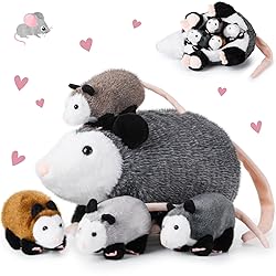 - Features: Safe and certified: Our opossum plush set is crafted with your loved ones in mind. Rigorously tested for safety, it meets quality standards, ensuring worry free play for children. Choose a gift that combines entertainment with peace of mind. Sustainable hugs: Embrace plushies. Responsibly sourced materials make these opossum not just delightful, but also conscious choices. Join us in promoting sustainability without compromising on the cuddliness your little ones crave. Specifications: Material: plush fabric, PP cotton Color: grey, brown Size: about 13.78 inches, about 4.72 inches Package includes: 1 x Mother opossum plush 4 x Baby opossum plush Notes: Manual measurement, please allow slight errors on size. The color may exist a slight difference due to different screen displays. Suitable for people over 12 years old.