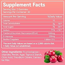 Multiple Health Benefits with Every Bite: Each serving of Babivek Cranberry & D-Mannose Gummy contains 1000mg of cranberry extract, 250mg of D-mannose, and 1 billion CFU of probiotic bacteria, supporting urinary tract health and overall wellness effortlessly. Delicious Cranberry Flavor & Easy to Take: Unlike traditional capsules, these tasty cranberry-flavored gummies deliver a rich fruit aroma that makes daily supplementation enjoyable and easy to swallow, perfect for busy lifestyles. Premium, All-Natural Ingredients: Made from high-quality, plant-based ingredients including fruit sugars and pectin, these gummies are free from gelatin, artificial flavors, colors, and high-fructose corn syrup, suitable for vegetarians and vegans. Safe, Clean, & Vegetarian Friendly: Produced according to GMP standards, our gummies are non-GMO, gluten-free, soy-free, nut-free, and dairy-free, ensuring a safe supplement choice for adults seeking natural health support. Convenient 30-Day Supply: Each bottle contains 60 gummies, with a recommended dose of 2 gummies daily. Store in a cool, dry place to maintain freshness. Enjoy a flavorful way to promote urinary health every day.