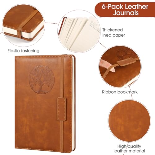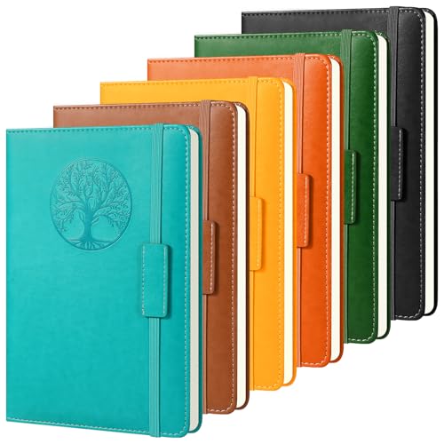 VZZNN 6 Pack PU Leather Hardcover Notebook, A5 Lined Journal Notebooks for Writing, Business Work,Travel,School,College, 5.5 x 8.3 inch, 240 Pages Classic College Ruled Journals Notepad, Mixed Color