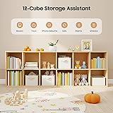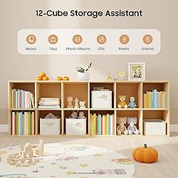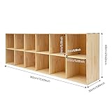 12 CUBE STORAGE ORGANIZER: The storage cube measures 70.8" (L) x 11.8" (W) x 23.6" (H), which meets a variety of basic household storage needs and is the ideal size to maximize storage space. Single cube size: 30 x 30 x 30cm/11.81 x 11.81 x 11.81in NATURAL SOLID WOOD: This cube organizer is made of high quality solid wood material, which is not easy to bend and break, and no unpleasant odour, it is more sturdy and durable, friendly for families with children. The back panel and floor standing design can reduce dust accumulation and prevent items from falling off, reducing the workload of daily cleaning. SUITABLE FOR DIFFERENT ROOMS: This bookcase, featuring an original wooden storage cubes, is designed to suit a variety of room settings. Its versatile design and ample storage capacity can be used as a bookshelf or for clothing & closet storage, making it an excellent choice for bedrooms, living rooms and offices. VERTICAL OR HORIZONTAL USE: This cube bookshelf is suitable for a variety of applications, it can be placed horizontally, vertically or used to partition space. We put the stability and safety of the bookshelves first, the bookshelves are made of sturdy materials and well-designed structure, no matter placed horizontally or vertically are not easy to wobble or tip over. SIMPLE ASSEMBLY: Featuring a traditional Chinese mortise and tenon structure, this cube storage is easy to assemble, allowing you to put it together like building blocks, saving you time and effort. The surface is smooth, You can easily use a soft cloth to wipe it clean.