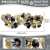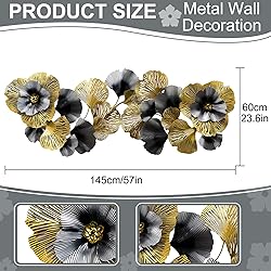 Large Metal Wall Decor for Living Room : This large metal wall decor is multiple lotus leaves stacked on top of each other, 3D metal wall art will give you the character of vivid image on your wall. Black, gold, colorful leaves wall decoration are stacking together for a natural feel High-quality Material: Rustic metal gold leaf wall art made of metal resistant, each item is individually hand to create a only. These beautiful home decorations have impressed the wall decoration, bringing some texture and fun to your. Extra large size: 57"X21" (145cm x 55cm) Handmade Flower Metal Wall Art : Mediterranean style wall decor, distressed rustic treatment, colorful flower wall decor, smooth wrought iron Polishing, hand-welded, beautiful shape, anti-rust surface treatment, durable,The color brilliance of the artworks is unique Easy To Hang /Install : The hook is designed on the back of the morden metal wall décor. You only need to punch holes in the wall, fix the nails, and hang the wall decor directly. It is strong, simple and convenient. Bedroom, living room, study, office, hall, hotel, restaurant, cafe, exhibition hall, wall art decoration Perfect Gift : Metal flower wall art decor, A stylish nautical coastal wall decor addition to any room or work space, light luxury metal art work set makes a thoughtful housewarming, wedding, christmas, halloween, birthday or thank you gift for friends and family