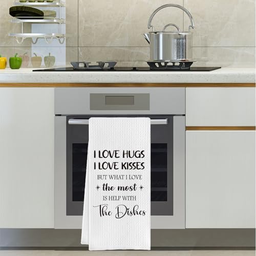 - I Like Hugs & Kisses but What I Love the Most Is Help with the Dishes: Funny kitchen towel for women friends, best friend, mom, nana, grandma, dad, gigi, aunt.