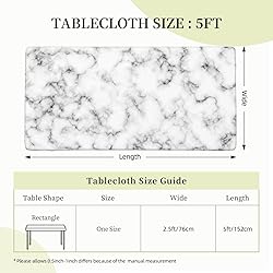 【Premium Material】: Made from high-quality 100% polyester, this tablecloth is waterproof, wrinkle-resistant, and stain-resistant, ensuring durability and easy maintenance 【Perfect Fit】: 4FT size is suitable for rectangle table lenght (40"-44") x wide (20"-25"); 5FT size is suitable for rectangle table lenght (45"-50") x wide (20"-25"). Please measure your table before purchasing to ensure the best fit 【Easy Installation】: The rectangle tablecloth features features elastic bands around the edges for quick and hassle-free setup, making it ideal for frequent use at home or events 【Versatile Use】: Decorate your space effortlessly with this stylish tablecloth, perfect for kitchens, dining rooms, patios, weddings, birthdays, holidays, and more. A thoughtful gift for any occasion, whether you're hosting family gatherings, enjoying outdoor picnics, or throwing formal parties, this tablecloth meets all your entertaining needs 【Care Instructions】: Machine washable for easy cleaning. Avoid bleach and ironing for optimal longevity