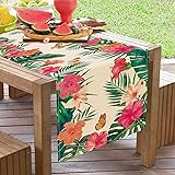 Croar Summer Hibiscus Flower Dining Table Runner, Tropical Plant Palm Leaves Monstera Butterfly Burlap Kitchen Decoration, Spring Hawaiian Luau Indoor Outdoor Home Decor Party Supply 13 x 90 Inches