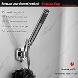 - 2025 Third-Generation Shower Head holder Enhanced Suction Cup Installation with epoxy resin coating, which enhances the durability of the suction cups while providing better protection for walls. The product is washable and reusable. 360-Degree adjustment allows you to set a more favourable position for showering.Includes adhesive pad accessories for installation on prorous walls in the future.Comes with a removal card to help customer take off the suction cups for reuse.