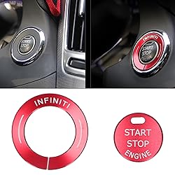 COMPATIBILITY: Specifically designed replacement for Infiniti Q50/Q50L/QX60 model. Please measure your vehicle's start-stop button diameter (approx. 25mm/1in) before purchase to ensure precise fitment SCRATCH & DUST PROTECTION: Effectively shields original start-stop button from daily abrasions and particle accumulation. Covers existing scratches with durable aluminum alloy overlay PREMIUM ALUMINUM ALLOY : Features scratch-resistant surface with vibrant red finish. Maintains original button's tactile feedback while adding metallic luster EASY INSTALLATION: Pre-applied double-sided tape enables secure adhesion without modifications. Pro tip: Use hair dryer to activate adhesive in cold weather ENHANCED INTERIOR STYLING: Includes 2pcs CNC-machined trim covers that upgrade cabin aesthetics