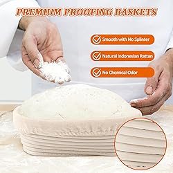 PROFESSIONAL 6-PACK FOR BULK BAKING: Designed for artisan bakeries, sourdough workshops, and passionate home bakers, this bulk set includes 6 premium oval proofing baskets. It allows you to proof multiple loaves simultaneously, improving baking efficiency and consistency for large batches or holiday gift giving. 100% NATURAL RATTAN MATERIAL: Handcrafted from top-grade natural rattan cane, our bannetons are eco-friendly, food-safe, and free from dyes or chemicals. The smooth, splinter-free surface ensures your dough releases easily while preserving its shape during the final rise. PERFECT 10" OVAL SIZE: Measuring 10 inches in length, these oval baskets are the ideal size for holding 1.5 to 2 lbs (approx. 750g-1000g) of dough. They are perfectly shaped to create classic "Batard" style sourdough loaves with a beautiful structure and height. SUPERIOR CRUST & PATTERN: The natural rattan material effectively wicks away moisture from the surface of the dough, promoting a crispier, golden-brown crust. When used without the liner, the basket imprints a stunning spiral ring pattern on your bread for a professional artisan look. INCLUDES 6 WASHABLE LINERS: Each basket comes with a custom-fitted linen liner cloth. Use the liner for handling sticky high-hydration doughs (like rye) or to create a smooth surface finish. The liners are removable and washable, making cleanup a breeze after every baking session.