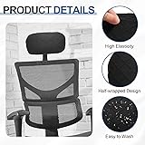 - Description Material: This office chair pillow cover is made of polyester, soft to the touch, high elasticity, can effectively fit the pillow cushion, giving you a breathable and cool feeling. Good wear resistance, can withstand long-term use. Half-wrapped Design: The computer pillow cover adopts a half-wrapped design, which can be removed and installed at any time. At the same time, it is easy to wash. Just wash it with water and dry it to continue using it. Easy to Use: When using these chair pillow covers, just put them directly on the pillow, and they can be installed successfully, it can effectively preventing dust, protecting the seat and head, and making you sit more comfortably. Wide Application: This office chair headrest accessory is suitable for office chairs with headrest, computer chairs, gaming chairs, etc. It is widely used in the home, office, conference room, and other scenes, bringing you a more comfortable and neater user experience. Specification Color: Black Material: Polyester Overall Size: 270 x 210mm/10.63 x 8.27inch(L*W) Package Contents: 1Pcs x Office Chair Pillow Cover