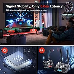 【Pro Version Wireless HDMI】TIMBOOTECH Pro version wireless HDMI transmitter and receiver is truly plug-and-play, supporting up to 4 RX. Wirelessly transmit video & audio from camera, laptop, Blu-ray player, set-top box to TV, monitor, projector, even across walls. Perfect for home entertainment, meeting, indoor or outdoor shooting, live broadcast, concert, gaming, and more. 【Plug and Play & HDMI Loop-out】Stream in just 3-5s by plugging TX and RX into your HDMI source and powering up. Re-pairing is easy—simply reconnect them using an HDMI cable. TX features an HDMI loop-out, allowing you to connect a TV stick directly to it, link the first TV via the loop-out port, and connect RX to a second TV in another room. Enjoy entertainment across multiple screens. Note: For stable transmission, use a DC 12V charging cable. 【Extended 1000FT Range & Multi-Receiver Connectivity】TIMBOOTECH's advanced transmission capabilities, provide an impressive range of up to 1000ft (300m) with no noticeable latency. Connect a single transmitter to up to 4 receivers simultaneously, allowing for viewing your content from multiple locations. Ideal for large-scale events and multi-room streaming. 【Dual Antenna, Dual-Band,0.06S Low Latency】Equipped dual antennas for enhanced signal strength and dual-band 2.4GHz and 5.8GHz high-speed transmission, this HDMI wireless ensures stable and reliable performance with a low latency of just 0.06 seconds. It allows the signal to penetrate walls within a long range, maintaining a strong connection even in congested wireless channels. 【OLED Screen & Cooling Fan Design】TIMBOOTECH Pro version wireless HDMI transmitter and receiver, both units have OLED displays that keep you informed and in control. Easily check connection status, battery levels, current channel, image quality settings, and more. The built-in cooling fan prevents overheating, and let you enjoy uninterrupted viewing for a long time with the cooling system. 【Flexible Power Options & Camera Screw Hole】This wireless video adapter offers 3 power supply options to suit your needs, including 12V DC power (adapter not included), NP-F970/750/550 battery (battery not included), and 5V/2.5A USB Type-C power. Additionally, the TX and RX are equipped with camera screw holds, providing a secure and stable attachment to your camera during video shooting. 【Wide Range of Application Scenarios】Perfect for a variety of uses, including indoor or outdoor shooting, photography, videography, live broadcasting, sports events, meetings, mini concerts, and weddings. Compatible with most HDMI-equipped devices like PCs, TVs, DSLRs, AV receivers, projectors, laptops, satellite, Blu-ray, set-top boxes, DVRs, and more. TIMBOOTECH offers 12-month replacement and 24-hour technical support, ensuring peace of mind with your purchase.