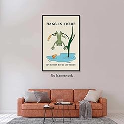 Funny Motivational Frog Poster Hang in There Wall Art Print Trendy Positive Quote for Living Room Bedroom Office Dorm Kids Room Cute Animal Humor Decor for Tough Days 12x18inch Unframed