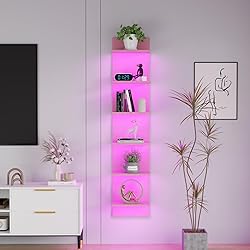 Qupui 6 Tier Wall Shelf Unit with LED Light, Display Floating Storage Home Decor Organizer Shelves for Bedroom Living Room, Pink