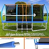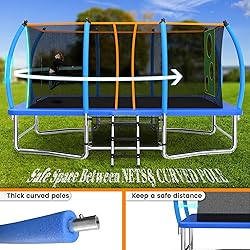- This 8X14FT Outdoor Square Trampoline is perfect. The safety enclosure net and balance bar design ensure maximum safety while jumping. The heavy-duty construction and UV-proof materials make this trampoline durable and long-lasting. With easy maneuverability in and out of the trampoline, it's a convenient and fun addition to any backyard. Packing List: Trampoline, safety enclosure net, balance bar, ladder, assembly instructions. To avoid the jumping mat reaching the ground cause injuries, SINGLE person's weight limit is 440LBS. Children please use the trampoline under the supervision of an adult to ensure safety. PART Added a unique football bag, combining "trampoline+football" to diversify functions and greatly enhance customer experience (each trampoline comes with a football) Safe space 360 degrees without dead ends, creating a safe play environment, the interval between mesh rods and security nets is large to avoid impact Sturdy and Durable Our trampolines are made of high-strength galvanized steel pipe, with professional powder coating on the legs to prevent rust, and thick foam with high water resistance, giving the trampoline a longer service life and a more beautiful appearance.