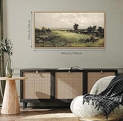 BLINFEIRU Framed Canvas Wall Art, Vintage Valley Wilderness Landscape Painting Print, Classical Vast Grassland Scenery Pictures for Bedroom Living Room Decor, Country Farmhouse Home Artwork 20"x40"