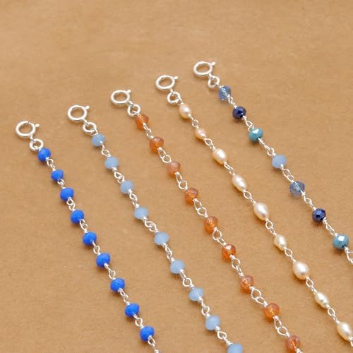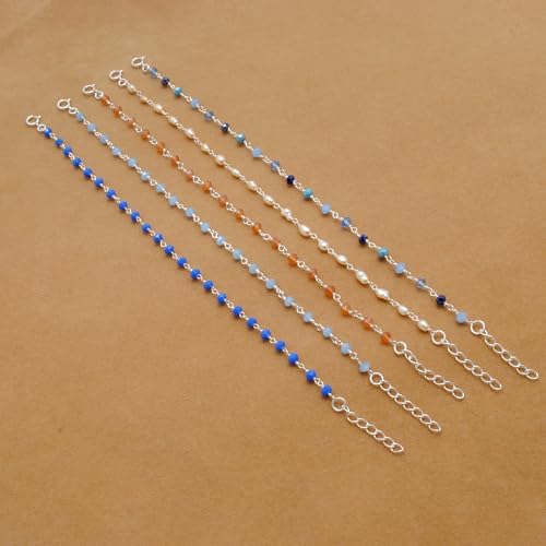 Kanika Creations 925 Silver With Pearl and Multi Chalcedony beaded Bracelet, Dainty Bracelet For Women, Silver Chain With Beads Jewelry for Gift