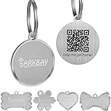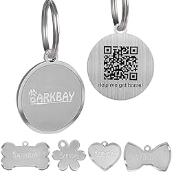 **Ultimate Smart Protection**–Upgrade to the BARKBAY SmartSteel ID Tag and experience the next level of pet safety! Crafted from premium stainless steel, this dog tag is built to withstand rough play, water splashes, and every outdoor adventure your furry friend loves. Unlike ordinary aluminum tags, it never bends or fades, keeping your pet’s information safe and clear. Perfect for pet parents who want long-lasting dog tags personalized to reflect their pet’s unique identity. **Anti-Lost Function**–You will receive a real-time alert via email or phone call when someone scans your pet ID tag’s QR code. Note: this is not a GPS tracker; location is only provided if the finder scans the QR code and chooses to share it with you. **Easy to Use**–Scan to activate the tag, registration just 3 steps and requires no APP or subscription fee, links to pet profile page contains the owner info, pet's name, photo, breed, and contact info; One account can manage multiple pets. **Fully Digital Profile**-Your pet’s identity is stored digitally. You manage all profile details online, including photos, phone numbers, etc. You can update your pet’s information anytime, ensuring the profile always stays accurate and up to date. Lost pets can be safely and quickly reunited without relying on outdated text that wears off. It’s smart protection that adapts to your life and your pet's changing needs. **Crystal Clear QR & Engraving**–Our innovative design combines permanent laser engraving with an embedded QR code, giving you double peace of mind. The engraving stays scratch-free and easy to read. Perfect Fit for Every Pet–Available in multiple sizes and shapes: Heart, Bow Tie, Dog Bone, Round, and Flower. The round small size (1.0 inches) is ideal for cats and small breeds, while round the regular size (1.2 inches) adds a bold touch for medium and large dogs. No matter your pet’s size, our custom dog tags will look great and stay comfortable during all-day wear.
