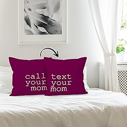 Liosei Call Text Your Mom Reversible Linen Throw Pillow Covers 18 x 18 Inch, Son Daughter Freshman Graduation Gifts Decorative Pillow Covers for College Dorm Classroom Living Room Couch (Purple)