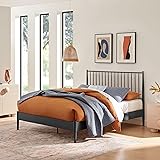 QUEEN METAL PLATFORM BED FRAME – This queen-size bed frame is made from durable iron and features a low-profile platform bed design that doesn’t require a box spring FARMHOUSE SPINDLE HEADBOARD – The queen headboard showcases evenly spaced metal spindles for a classic farmhouse-inspired look with modern refinement WOOD SLAT MATTRESS SUPPORT – The built-in wood slat system on this platform bed frame supports your mattress without the need for a box spring, promoting airflow and comfort SLEEK METAL FRAME – The smooth finish enhances the clean lines of this queen bed frame, offering a versatile mattress foundation that complements farmhouse, mid-century, industrial, or contemporary bedroom styles NO BOX SPRING NEEDED – Designed for convenience, this queen platform bed includes supportive slats, eliminating the need for a separate foundation. Dimensions: 64"W x 84”D x 45”H