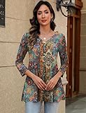 Comfortable fabric: This women's 3/4-sleeve top is made from 95% polyester and 5% spandex, offering a lightweight and breathable feel for all-day comfort. It's the perfect choice for spring, fall, or seasonal transitions Unique design: This casual women tunic features a relaxed fit, V-neck, and 3/4-sleeve design paired with boho-style floral prints, making it a trendy top that reflects your fashion sense Versatile styling: The V-neck T-shirt can be worn as a formal top or a business-casual top. Pair it with jeans or leggings for a casual look, or with elegant accessories for a date night outfit Suitable for various occasions: Our casual blouse is loved by women of all ages. Whether for teachers, vacations, office work, dates, home relaxation, or as gifts for Valentine's Day, Christmas, Back-to-School Day, or Mother's Day, it's an excellent choice Clothing care: Hand wash recommended. Machine washable in cold water using a gentle cycle. Do not bleach. Please check the SIZE CHART before purchasing and for a slimmer look, choose one size smaller
