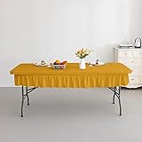 RUOYU 4ft Golden Yellow Stretch Tablecloth for Rectangular Tables - Flared Wrap Design, Waterproof, Wrinkle-Resistant, Washable - Ideal for Weddings, Parties, Banquets & Table Protection