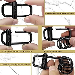 1. The key chain made of Zinc Alloy material design with heavy duty locking keychain clip, which keep your keys with 4 key rings in safe with you will not fall out. 2. Keychain is very easy to added or removed keys by key quick released clip the locking button, also put on or take off your belt loop. More flexible to be function and a fashionable keychain accessory in daily life. 3. Our key chain ring is very sturdy for men and women, it is very convenient as a good helper to organize your home keys, car keys, and other key chain accessory ). More colors available for choose. 4. The locking keychain size: 2.55 x 1.18 inches with 1.74 OZ with 4 keyrings, Small and heavy duty key clip, convenient to carry and use, not easy to lose your keys. 5. 1 year quality issue address with our friendly service, If you're not completely satisfied with our heavy duty key chain, please let us know, we'll offer a satisfaction solution. The packaging included 1 x main keychain, 4 x keyrings.