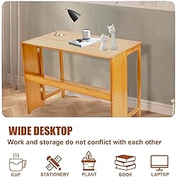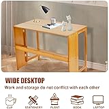 【Foldable & Large Capacity】This foldable desk features a unique folding design, measuring 40.6" x 9.8" when folded, making it an ideal solution for small space users who want to use space effectively. Stay efficient and organized even in the smallest of spaces. Our desk has a desktop size of 40.6" x 21.3", providing ample storage space. The wide lower shelf not only strengthens the structure of this compact desk, but also facilitates the storage of books and small items 【Natural Bamboo Material & Easy to Clean】Made of high-quality bamboo, this computer desks is not only suitable for small spaces, but also exudes a warm and inviting atmosphere. The natural grain of the wood enhances its beauty, complementing a variety of decorative styles, and can also add warmth and comfort to every space it occupies. The smoo-th finish is coated with a layer of varnish, which is not only waterproof but also easy to clean and wipe off stains 【Versatile Use】This writing desk is a versatile addition to any room and can be used as a reading stand, dressing table, or small dining table. It can also serve as a dedicated work-space or writing desk for a laptop. This practical and versatile table can easily transform your space, and its compact size and shelf design make it a versatile addition to any room in your home or office 【Stable & Durable】Our study desk is designed with reinforced metal hinges and sturdy legs. It is made of selected alpine bamboo, which has a tough texture and solid structure, ensuring durability and longevity. You can work, write or read with confidence, knowing that your desk will provide reliable support. The corners are carefully polished to protect your family from collisions and scratches 【Easy to Install】Our packaging includes detailed instructions and all the tools needed for assembly. In just three easy steps, you can install the bedroom desk effortlessly and enjoy its stability. If you have any questions about the product, please leave a message to our email, and we will reply to you as soon as we see the message