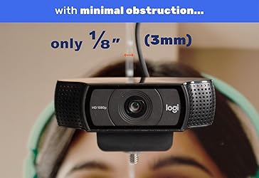 ALMOST INVISIBLE: crystal clear and only ⅛" (3mm) wide so you can see what's on the screen behind it. EASY TO USE: Hangs on your monitor. Takes seconds to get ready for a call, or to put it away. DON'T LOCK YOURSELF IN TO INFERIOR VIDEO AND AUDIO: Unlike solutions with built-in micro webcams, it attaches to your favorite high-quality webcam with a ¼" tripod screw (except Opal C1) and gives you the freedom to upgrade webcams in the future. HOW LOW CAN YOU GO? Has 5 height settings to lower your webcam between 2½ and 5¼" from the top of your monitor. 5" and 12" extenders available for purchase, to center your webcam on large or DualUp displays. See last picture and other listing for details. FOR THICK OR THIN: From Macbook Air to monitors/TVs thicker than 1" at the top, or curved monitors. BEFORE YOU BUY: If your webcam plug is >1" like the Brio 4K and MX, add a stereo-bend 90-degree USB-C adapter to your cart before you checkout. ROCK SOLID: Does not wobble or vibrate when set up correctly. Do not buy if your monitor shakes or vibrates when you touch or walk around your desk (esp. stand up and antique desks). QUICK SETUP: Ships fully assembled to get you ready for your first call. See unboxing video below. HANDMADE IN USA