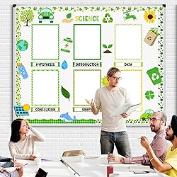 Complete Science Board Supplies: you will receive 93 science board posters supplies including 24 blank posters convenient for you to write, 4 science fair project title stickers, 2 letter stickers, and 10 science bulletin border stickers, 8 green pattern stickers, and 5 adhesive sheets; Science boards are not included, but there are enough stickers to decorate a science presentation board that is sure to impress everyone DIY Decoration: our science project poster set is easy to use, you just need to stick these bulletin board frames and letter stickers to the blank poster with the glue included in the set, and then stick them to your science display board to complete the presentation; This science DIY exhibition poster is conducive to improving hands-on ability and enhancing awareness Right Size: science fair supplies come in a variety of sizes, title stickers are approximately 12.60 x 9.45 inches each, presentation border stickers are approximately 10.63 x 9.45 inches, letter stickers are approximately 12.20 x 9.45 inches, graphic stickers are 12.20 x 9.45 inches, blank posters are approximately 11.42 x 8.66 inches, good for most of your science presentation needs Green Environment Atmosphere Design: Our science poster display board adopts green creative theme design, the bright green color adds a sophisticated and charming feeling to your science project, these visually appealing designs can easily attract attention and enhance the overall atmosphere, making your science bulletin board memorable Versatile Bulletin Board Decoration: this science exhibition board is not only suitable for science exhibitions, you can also use them for various science demonstration projects, classroom activities, office presentations, community event displays; Their design and function make them suitable for a wide range of people and uses, reminding everyone to enhance green environmental awareness
