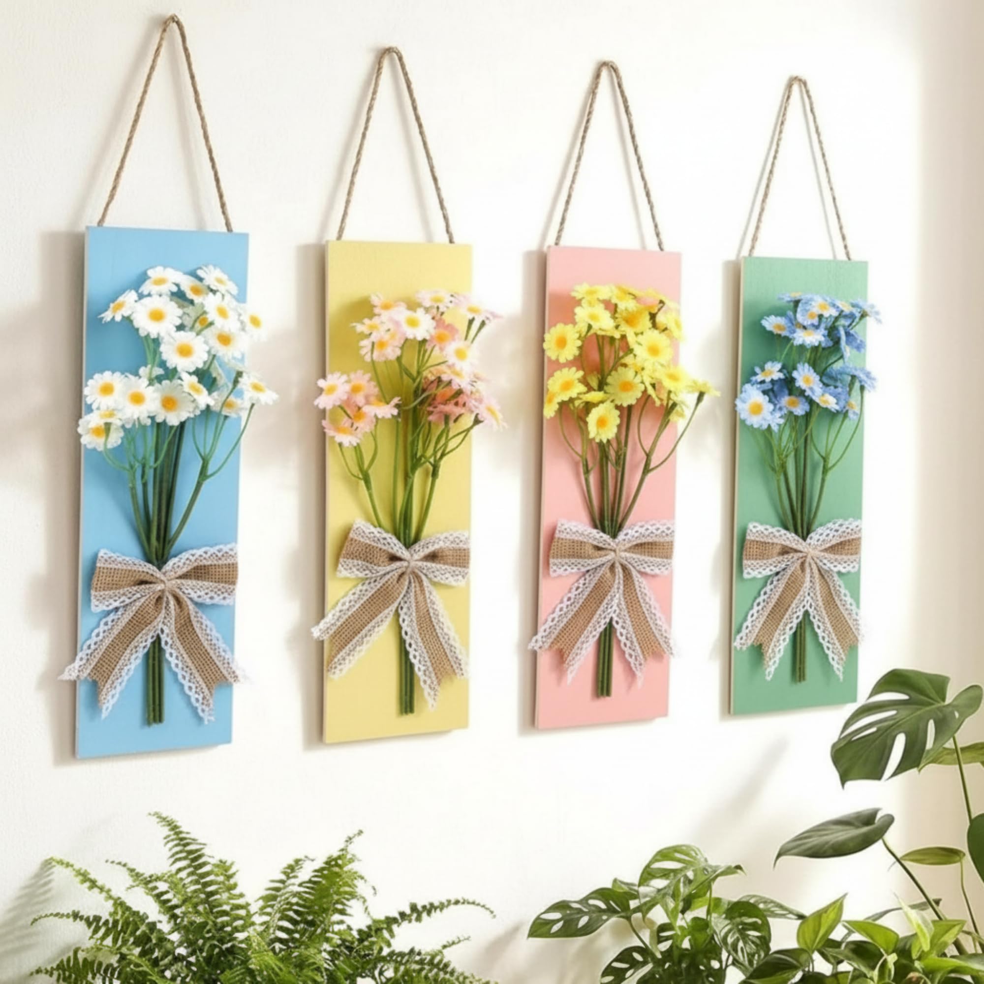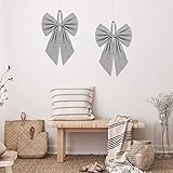 - Features: Two-piece value set: Each set contains 2 burlap wreath sash of the same style, which can be hung symmetrically or applied in different scenes to easily create a harmonious and unified decorative effect, with extremely high cost performance. Convenient installation design: This Easter wreath sash has a built-in hanging rope design, no additional tools are required, and it can be hung in one second. The bow shape can be flexibly adjusted, and the full three-dimensional sense can easily enhance the decorative level of the space. Basic information: Quantity: 2 Material: linen Color: black and white Size: 19.6 x 11.8 inch Package includes: 2 x Black white stripe wreath bow Note: Due to manual measurement, the size may vary slightly. Due to screen display, product color may vary slightly from the pictures