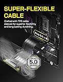 【GEN5 X16, 128 GB/s】 PCIe 5.0 delivers up to 64 GB/s unidirectional and 128 GB/s bidirectional bandwidth, Future-proof and ready for RTX 5090, 4090, and RX 9000/7000 series.Fully backward-compatible with PCIe 4.0/3.0/2.0/1.0. 【 6-LAYER PCB & FULL-LANE SHIELDING 】 Individually wrapped high-speed lanes inside a 6- layer board crush crosstalk and EMI, keeping data errors ultra-low to stop black screens and random crashes. 【 ULTRA-FLEX TPE CABLE 】–Premium TPE jacket bends sharply without kinks, perfect for tight ITX builds or showcase vertical mounts while resisting wear and tear. 【 REINFORCED METAL SLOT & PRECISION COPPER CONTACTS 】Metal shell blocks external interference, while tight tolerance copper pins lock in rock-solid connections—even under heavy GPUs—eliminating intermittent signal drop-outs 【 CHOOSE YOUR PERFECT FIT】 Available in 200mm and 300mm lengths with 90° and 180° connector options, this flexible PCIe 5.0 riser cable is ideal for clean, efficient vertical GPU setups. 【Universal Fit & Case Guide】 Adjustable 103.5-130.5mm slotted base natively fits 7000D Case. Recommended 200mm for Mid-Towers (O11 Vision, H6/H7/H9, North, King 95) and 300mm for Full-Towers (NV7/NV9, Hyperion).