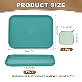 PATIKIL 7.9x5.9 Plastic Tray, 2 Pack Rectangular Plates Small Food Tray Wheat Plates Dishes Reusable Dessert Plate Trays with Cloth for Cake Fruits Salad Cupcake Steak Serving Dark Green