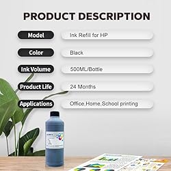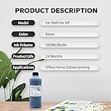 - Aomya Ink Refill Kit Black 500ml Dye Bulk Ink for HP Inkjet Printers Refillable Cartridge CISS CIS System with (16.9 oz)