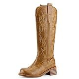 VBDB Cowboy Boots Knee High Women Western Embroidered Square Toe Wide Calf Chunky Heel Chunky Heel Retro Classic Tall Boot Pull on for Ladies Fall Winter