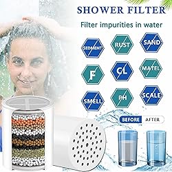 【Premium Filtration Syetem】This Shower Filter Made of Activated Carbon,KDF 55,Alkaline Ceramic Balls and Other Filtering Materials Ensures Best Effect of Water Quality Purification. 【Clean and Health Water】This High Output Shower Filter for Hard Water which Can Effectively Reduce Unpleasant Odors,Chlorine,Heavy Metals,Rust,Sand and Other Sediments,Protect the Health of Skin,Hair and Keep Nails Clean. 【Constant Water Pressure】This High Performance Shower Filter Won't Reduce Existing Water Pressure for an Improved Rinse,But if It Has a Lot of Sediments You May Need to Backwash Often to Avoid a Decrease in Water Flow. 【Easy Replacement】No Tools or Plumber Are Required,Just Need to Unscrew the Handheld Shower Head by Hand,Take Out the Old One and Replace the New One,Make Sure the Washer is in the Slot Which is Inside the Filter to Avoid Leaking. 【Kindly Suggestion】We Suggest You Replace The Filter Every 3-4 Months for Your Best Hair and Skin Ever, Also Depending on Water Quality and Frequency of Use.
