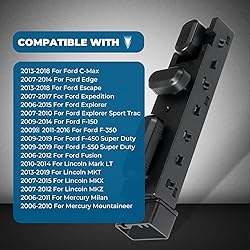 【Compatibility】This power seat switch is compatible with 2007-2014 Ford Edge, 2013-2018 Ford Escape, 2006-2015 Ford Explorer, 2007-2010 Ford Explorer Sport Trac, 2007-2017 Ford Expedition, 2013-2018 Ford C-Max, 2009-2014 Ford F-150, 2011-2016 Ford F250/F350/F450/F550 Super Duty, 2009-2017 Ford Flex, 2010-2018 Ford Taurus, 2006-2012 Ford Fusion, 2010-2014 Lincoln Mark LT, 2013-2019 Lincoln MKT, 2007-2015 Lincoln MKX, 2007-2017 Lincoln Navigator, 2006-2010 Mercury Mountaineer, and 2006-2011 Mercury Milan. 【Replacement Part Number】This power seat switch replaces OEM part numbers 9L3Z14A701FB, SW6556, SW7260, PSW3, 601601, and 1S9089. 【Feature】This switch is designed for the front Left Driver side and features a 12-pin connector. Verify your vehicle's seat switch configuration and pin count before purchase to ensure compatibility. 【Installation】The switch is a direct plug-and-play replacement for the original factory unit. Installation typically takes less than 10 minutes with no modifications required. 【Quality Assurance】This power seat switch is constructed from durable materials and undergoes rigorous testing to ensure reliable performance.