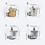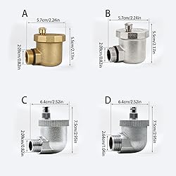 - Brass Automatic Exhaust Valves Air Vent Pressure Relief Valves Replacement Solar Water Heater Vertical Air Vent Valves Features: This automatic float Valves features high temperature resistance, rusts protections, preservative, reliably sealing. Suitable for solar water heaters, high temperature The float is make of special materials. The exhaust mechanism is very stable and is cast from high precisions brass component. Automatic air vent Valves is to demount and maintenance. Equipped with a filter screen, it can filter out larger impurities and clogging. Specifications: Materials: Coppers Styles: 1/2inch Automatic Exhaust Valves Natural Color/ 1/2inch Automatic Exhaust Valves/ 1/2inch Rapid Exhaust Valves/ 3/4 Rapid Exhaust Valves Size: As Shown in the Picture Package Includes: 1pc Air Bleeder Release Vent Valves Note: Please allow 1-2cm errors due to manual measurement, make sure that you do not mind before you order. Due to the difference between different monitors, the picture may not reflect the actual color of the item.