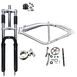 Package including 1pc 3.4L Felt Faker Brushed Alum,1 pc 26" Suspension Fork & Headset with Double Shoulder, 1pc 36T Wide Crank Assembly, 1pc Mount This frame can be painted with any color. Disc brake bracket; compatible with 26"*2.325 inch tire max Compatible with the motor that with Front Mount width 32mm and 40mm. This part allows you to convert a 1 piece crank into a 3 piece crank; Compatible with 9/16 inch pedals.