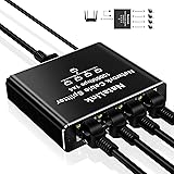 【Network Splitter 1 to 4】 RJ45 Splitters expand one Ethernet port to four to solve the problem of insufficient router/switch ports. Four devices can connect to the same network at the same time (Note: This product equips with a USB power cable and must be connected to a power source when in use) 【High Speed Transmission】Ethernet Extender enables four devices to share the same Ethernet network at speeds up to 1000Mbps, giving you lightning-fast data transfer speeds. Ethernet cable splitter supports up to 100 meters of cable network, which meets the needs of different locations to share the network. (Note: Four devices share 1000M network, and a single computer can support up to 1000M when connected) 【Plug & Play】No additional software or drivers are required for this LAN Splitter. It's plug-and-play, just connect the USB power cable, plug the main Ethernet cable into splitter, and connect the splitter to four devices. Make you more convenient and concise to enjoy the internet 【Wide Compatibility】 This Gigabit Ethernet Splitter is compatible with a wide range of devices, including ADSL, hubs, switches, TVs, set-top boxes, routers, wireless devices, and computers and so on. Ethernet Port Splitter is also suitable for a wide range of Ethernet cables such as Cat 5, Cat 5e, Cat 6, Cat 7 and Cat 8 【Package Content】Includes: 1 Ethernet Splitter 1 to 4, 1 USB power cable and 1 user manual. You can read the user manual for use problems, if you have any questions, please feel free to contact us, and we will solve the problem for you as soon as possible 【Aluminum Housing】Cat 6 Splitter is crafted from high-quality aluminum metal material, providing durability, stability, and efficient heat dissipation. 【 Small Size Design】Small size design of Network Splitter saves space for you, offers greater flexibility for your network expansion plan. It's suitable for home , office use