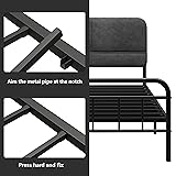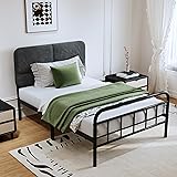 Easllre 14Inch Metal Bed Frame,Twin Size Bed Frame with Upholstered Headboard,Heavy Duty Sturdy Mattress Foundation,Easy Assembly,No Box Spring Needed,Grey-Twin