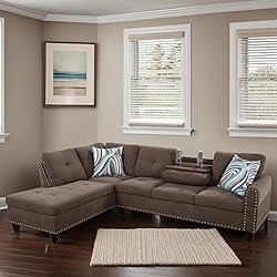Premium Material: Living room furniture is enveloped in stain-resistant upholstery that adds a vibrant hue to any decor. Also, the sofa is made of a fade-resistant material that allows it to retain vibrant color for a long time Flexi-Modular Design: L-shaped sofa features modular sections that can be freely rearranged to create a cozy lounging nook. Engineered for small-space efficiency, couch maximizes floor space and offering versatile options Long-lasting Comfort: Sectional sofa features high-density foam cushions that deliver cloud-like support while resisting sagging over time, paired with a kiln-dried solid wood frame for unwavering stability Space-Saving Marvel: Sectional sofa seamlessly blends compact design with generous seating capacity. Its modular construction allows for quick assembly and disassembly, making it ideal for apartments, studios or office lounges Comfy Chaise Lounge: Spacious L-shaped sectional features a chaise extension, perfect for sprawling out during movie or family conversations. Sink into its embrace to unwind, recharge, and cherish moments that matter
