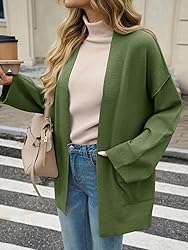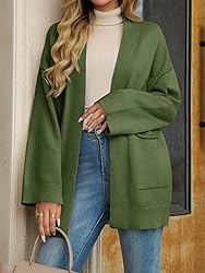 - Introducing the womens oversized cardigans, a must have piece of outerwear for every season. Made from a blend of 30% Polyester, 26% Viscose, 24% Acrylic, and 20% Polyamide, these cardigans offer a soft, warm, and lightweight feel. Featuring long sleeves and an open front design, they can be worn as a shawl, adding an elegant and stylish touch to any outfit. The loose fit and oversized silhouette provide a comfortable and laid back look, making them suitable for various body types. The inclusion of pockets not only adds functionality but also enhances the overall charm of these cardigans. Whether you're traveling, going about your daily routine, or simply relaxing at home, these pockets come in handy. Available in various colors, these knit cardigans are versatile enough to pair with anything from a simple top and jeans to a more formal dress. They are perfect for fall, winter, and spring, making them a year round staple in your wardrobe. Whether you want to stay cozy on a cold day or add a fashionable layer to your outfit, the womens oversized open front cardigans are the ideal choice.