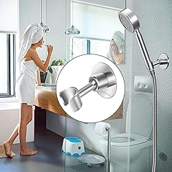 ❤️WARM TIPS: 1. Fit for Marble, Glass, Tiles, Metal, Solid Wood(Please do not purchase if the bathroom walls are uneven.). 2. Not fit for Wallpaper, Embossed surface, Paint, Enamel varnish, Lime wall. 3. (IMPORTANT)The tapered structure design requires the wide end to face upwards so that the hand shower can be fixed firmly. 4. If the hand shower is not fixed and droops, tighten the base. 5. Be sure to watch the installation video or user manual on the amazon detail page before installation. Universal Fit with Precise Design :- This shower head holder features a tapered slot design (0.9"/23mm top, 0.83"/21mm bottom) to securely hold most standard shower wands. Not compatible with hoses over 0.87"/22mm or waterpick message shower heads - please measure your handheld shower wand before purchase. Effortless Adjustability for Comfort :- The handheld shower wand bracket swivels up/down/left/right to position your showerhead perfectly. Tighten the Base Connector After Adjustment to Prevent Sagging.( Note: The shower holder may feel stiff when adjusting by hand without the shower head attached. This is normal - the weight of the shower head helps smooth movement during actual use.) Premium Stainless Steel Construction :- Handheld showerhead holder is crafted from SUS304 stainless steel with rustproof brushed finish, offering superior rust resistance,easy to clean and blends seamlessly with modern bathroom decor. No-Drill Adhesive Mount Two Installation Modes :- 1. Adhesive Mounting (Long-term Use)-clean surface, apply adhesive, press firmly with included support stickers. 2. Adhesive Sticker Installation (Temporary Use)-clean surface, stick the adhesive side on the shower bracket base and then mount it to the wall. No tools or drilling needed - just wait 72 hours for maximum hold on smooth surfaces. (Note: Not suitable for textured/uneven walls - for best results, install on smooth/flat surfaces.) You Will Get :- The shower head holder set Includes 1 x SUS304 stainless steel shower head holder, 1 x installation kit. We've got your back! If you encounter any issues with your Adjustable Handheld Shower Head Bracket,contact us immediately - we promise a response within 24 hours.