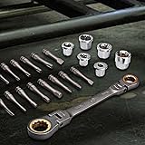 Comprehensive Socket and Wrench Set: This drive socket set features a variety of professional-grade wrenches and sockets, making it the perfect tool kit for home repairs, vehicle maintenance, and more Multifunctional Tool for Various Repairs: Whether you're working domestic appliances, assembling furniture, or tackling car repairs, this multifunctional wrench set is designed to meet all your needs. Construction: Made from premium chrome vanadium steel, the tools in this set are built to last. The -resistant finish ensures that your tools stay in excellent condition, even with frequent use & Easy to Use: Each tool in this set is ally designed for comfort and ease of use. The handles provide a secure grip, reducing hand fatigue during extended use. Whether you're tightening bolts furniture or adjusting parts in your car Complete Kit for Home & Vehicle Maintenance: This all-in- toolset is ideal for homeowners, car enthusiasts, or anyone who needs a comprehensive solution for household or vehicle repairs. The included sockets and wrenches make it easy to tackle a wide range of tasks