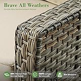 Conversation Set: Elevate your outdoor lounging with this comprehensive sectional sofa set, featuring 2 corner chairs,4 armless chair, 1 coffee table, 8 pillows, and 6 cushions. It comfortably accommodates 6 people. The classic brown rattan design ensures it fits beautifully in any backyard, poolside, deck, or indoor/outdoor setting. Comfortable Outside Couch:Indulge in maximum comfort with the 3.5" thicken seat cushions and ergonomic backrest in this patio set. Ideal for extended outdoor lounging with family,and take a conversation for your guest long time, offering optimal support for your relaxation needs Durable Outdoor Sofa:Introducing our outdoor PE wicker sofa, built to withstand the test of time. Crafted with durable materials, it can endure harsh weather conditions. The strong steel frame guarantees stability, while the PE wicker resists fading and cracking Modular Sectional Set:Customize your outdoor space with this sectional patio furniture set. With multiple configuration options, you can create a welcoming outdoor oasis for lounging, entertaining, or simply enjoying the fresh air. Create your perfect setup and make the most of your outdoor living experience Easy Assembly & Maintain:Assembling this patio furniture set is a breeze with the provided tools. Maintenance is easy thanks to the splash-proof material. The cushion covers can be removed for convenient cleaning, while the glass table top is a snap to clean with just fresh water or a warm soak for tough stains