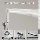 AYIVG Thermostatic Full Body Shower System Dual Rainfall Shower Head LED 16 X 26 Inch And 8 Inch Wall Mount With 6 Jets 4 Way Diverter Valve Digital Display Handheld Shower Fauct Set (Brushed Nickel)