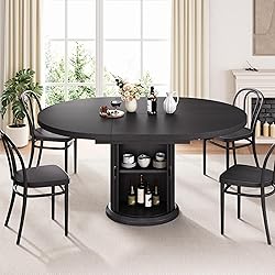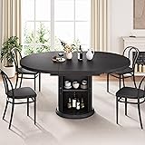 - Dining Table for 4-6,63“Extendable Round Kitchen Dining Room Table with 2-Tier Storage Shelf, Space Saving Expandable Wood Oval Circle Dinner Furniture with Pedestal Base (Black)